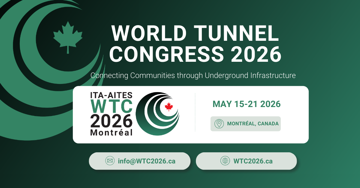 Le CERIB exposera au World Tunnel Congress 2026 (WTC 2026) du 18 au 20 mai 2026 à Montréal, au Canada.