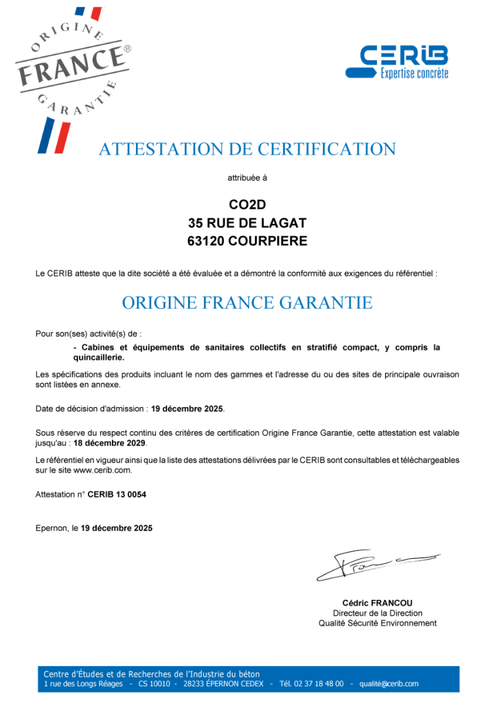Attestation de conformité – Certificat attribué à CO2D pour son activité de :
